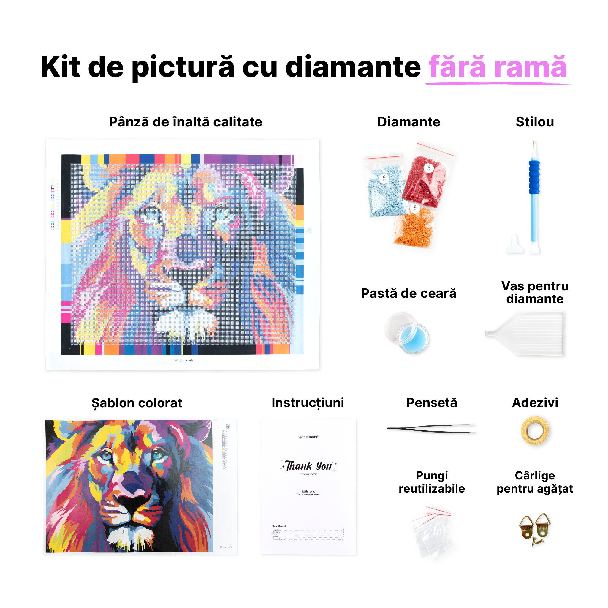 Pictura cu diamante este o activitate creativă care permite oricui să devină artist chiar și fără experiență. Tablourile de pictură cu diamante sunt create cu ajutorul unor diamante mici care sunt fixate pe o pânză autoadezivă cu ajutorul unui stilou și a cerii. Montați treptat diamantele pe pânză și privește cum iese capodopera ta. Pictura cu diamante este potrivită pentru toată lumea, adulți și copii, creativi de toate vârstele. Vă veți relaxa, vă veți destinde și vă veți deconecta în timp ce vă creați tabloul. Pictura cu diamante este o activitate de bricolaj și este, de asemenea, denumită uneori artă cu diamante sau "diamond painting". Fiecare kit de pictură cu diamante conține tot ce aveți nevoie pentru a crea picturi.