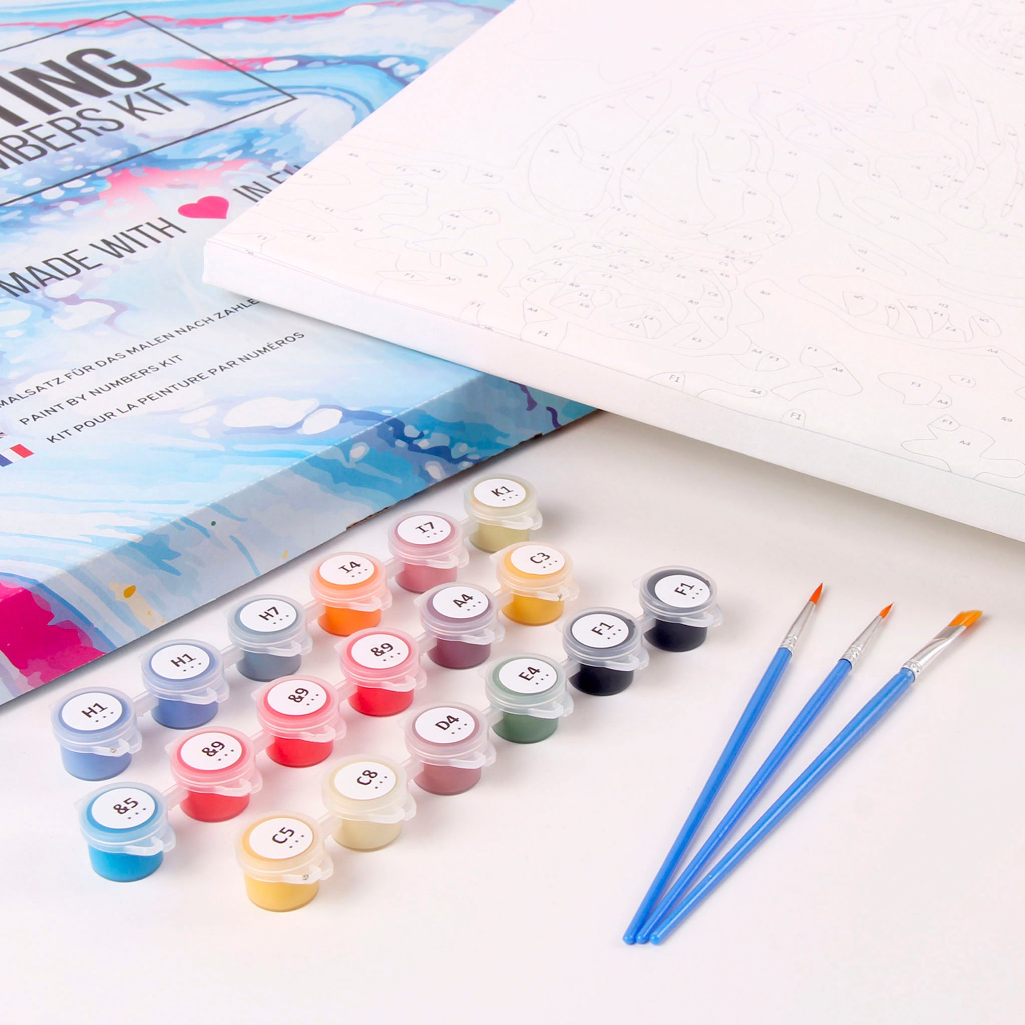 Pictura pe numere este simplă și accesibilă oricui. Vei primi un model, pensule, o pânză cu suprafețe numerotate și vopsele acrilice numerotate. Fiecare număr aflat pe această pânză corespunde unei anumite culori numerotate, pe care o vei utiliza la pictarea acestei zone. Urmărește modelul și pictează cu pensula fiecare suprafață, observând cum ia naștere pictura pas cu pas. Oricine poate deveni artist cu setul nostru premium de pictură pe numere.