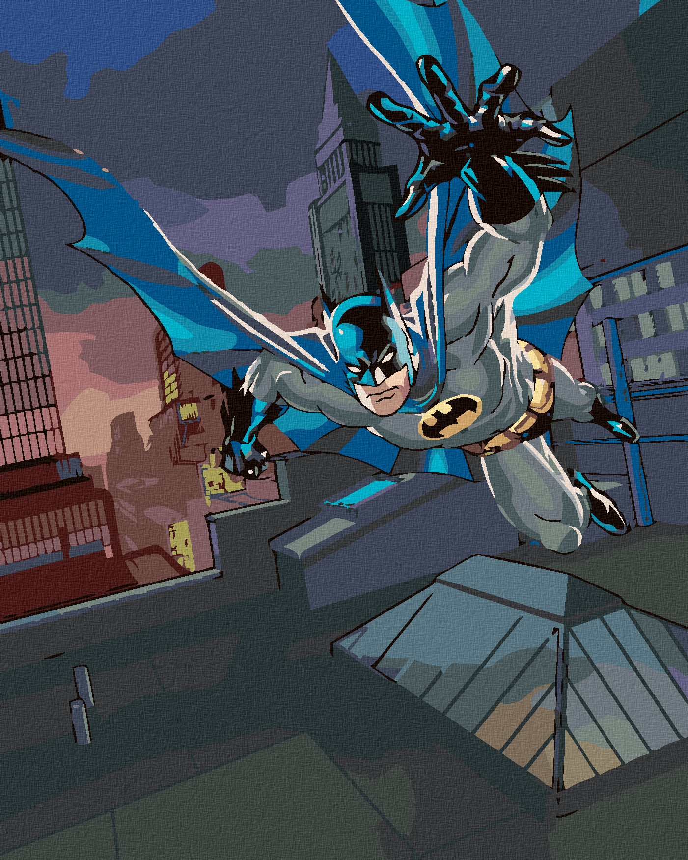 Pictură pe numere - BATMAN PE ACOPERIȘUL UNEI CLĂDIRI
