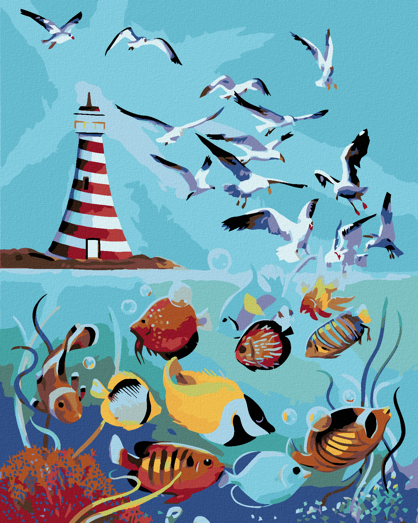 Pictură pe numere - PESCĂRUȘI, FAR ȘI PEȘTI (D. RUSTY RUST)