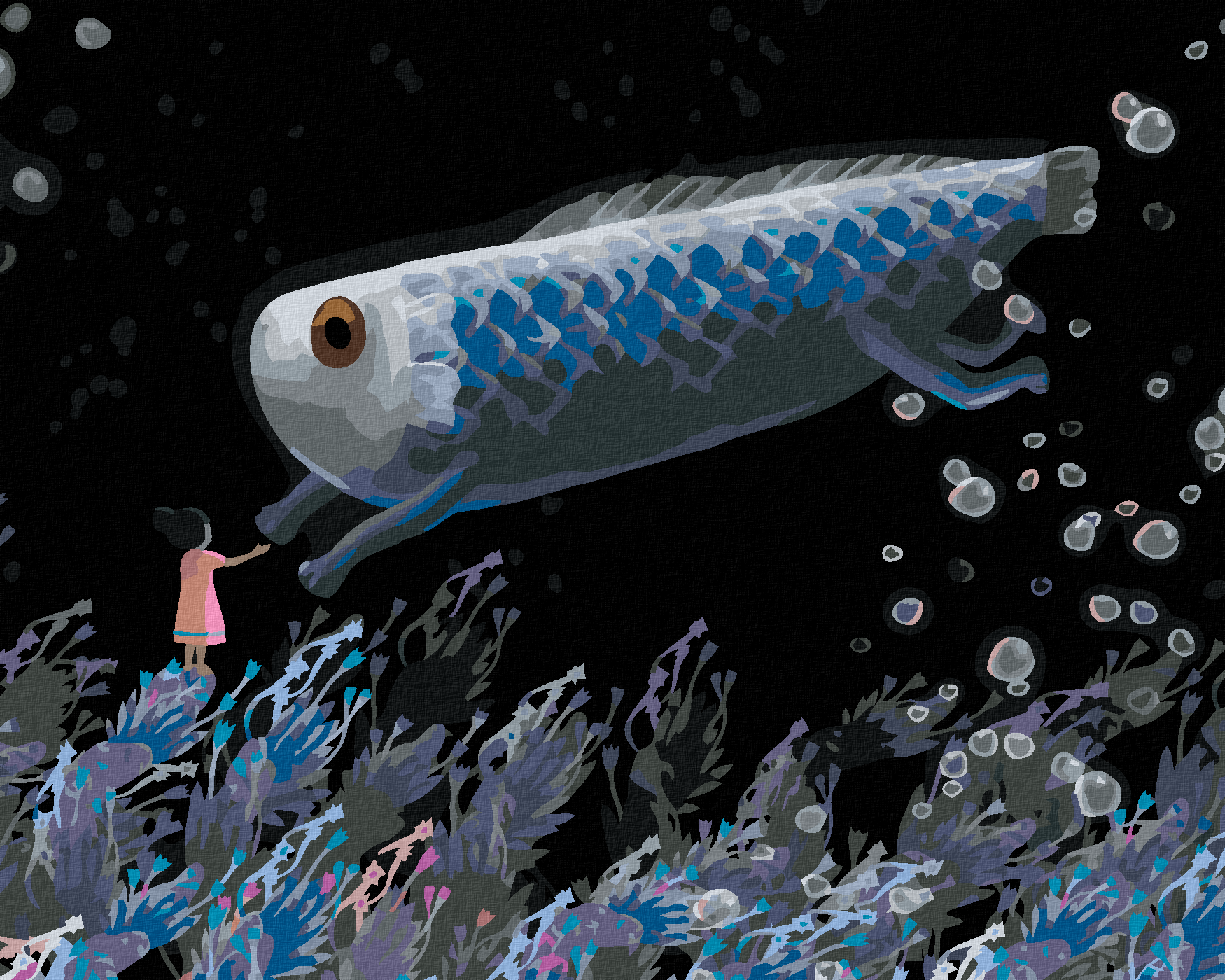Pictură pe numere - FETIȚĂ CU UN PEȘTE URIAȘ
