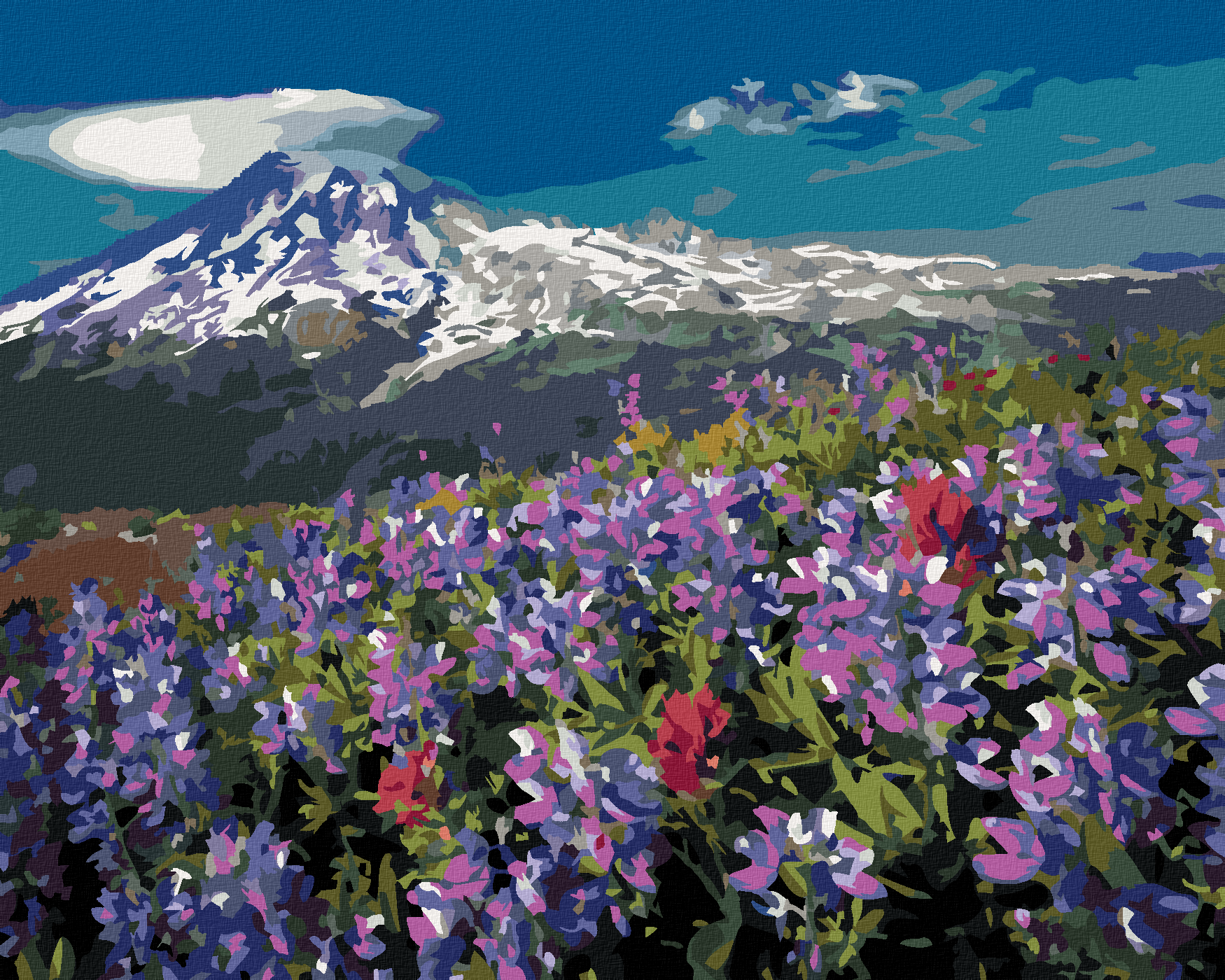 Pictură pe numere - FLORI MOV ÎN SPAȚIU MONTAN (DENNIS FRATES)