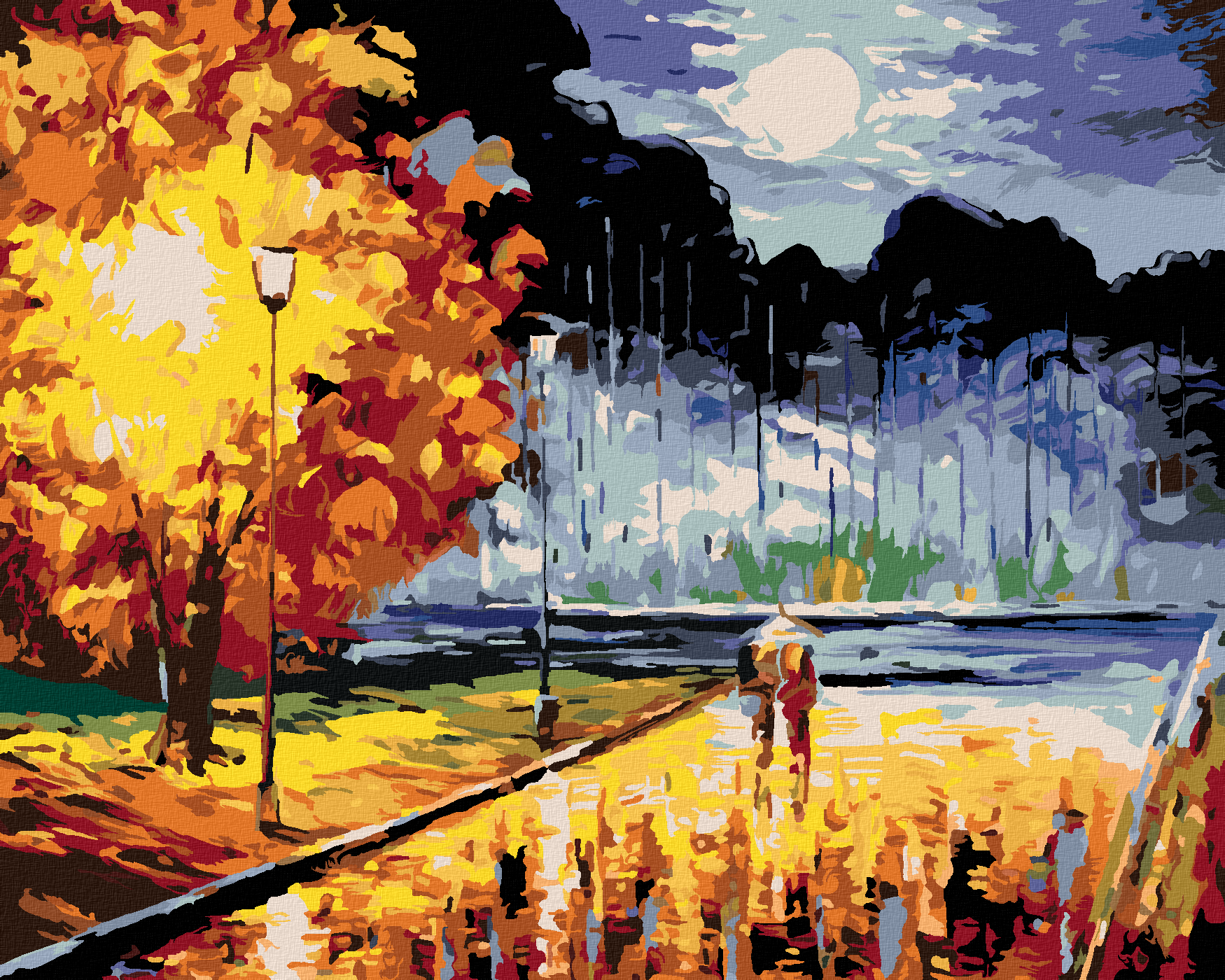 Pictură pe numere - ÎNDRĂGOSTIȚI LA O PLIMBARE DE SEARĂ