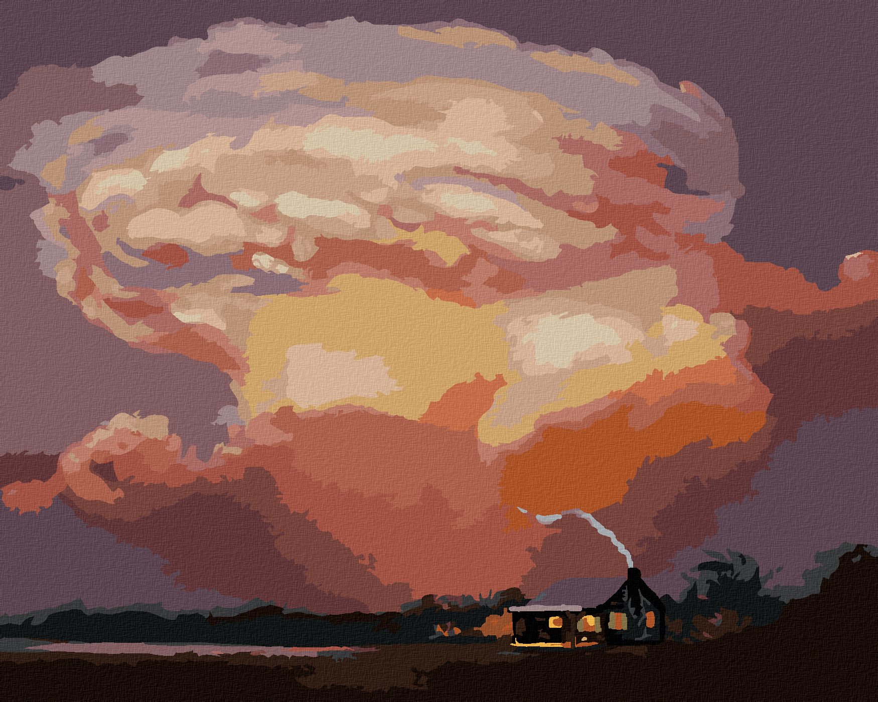Pictură pe numere - NORI DEASUPRA CABANEI (D. RUSTY RUST)
