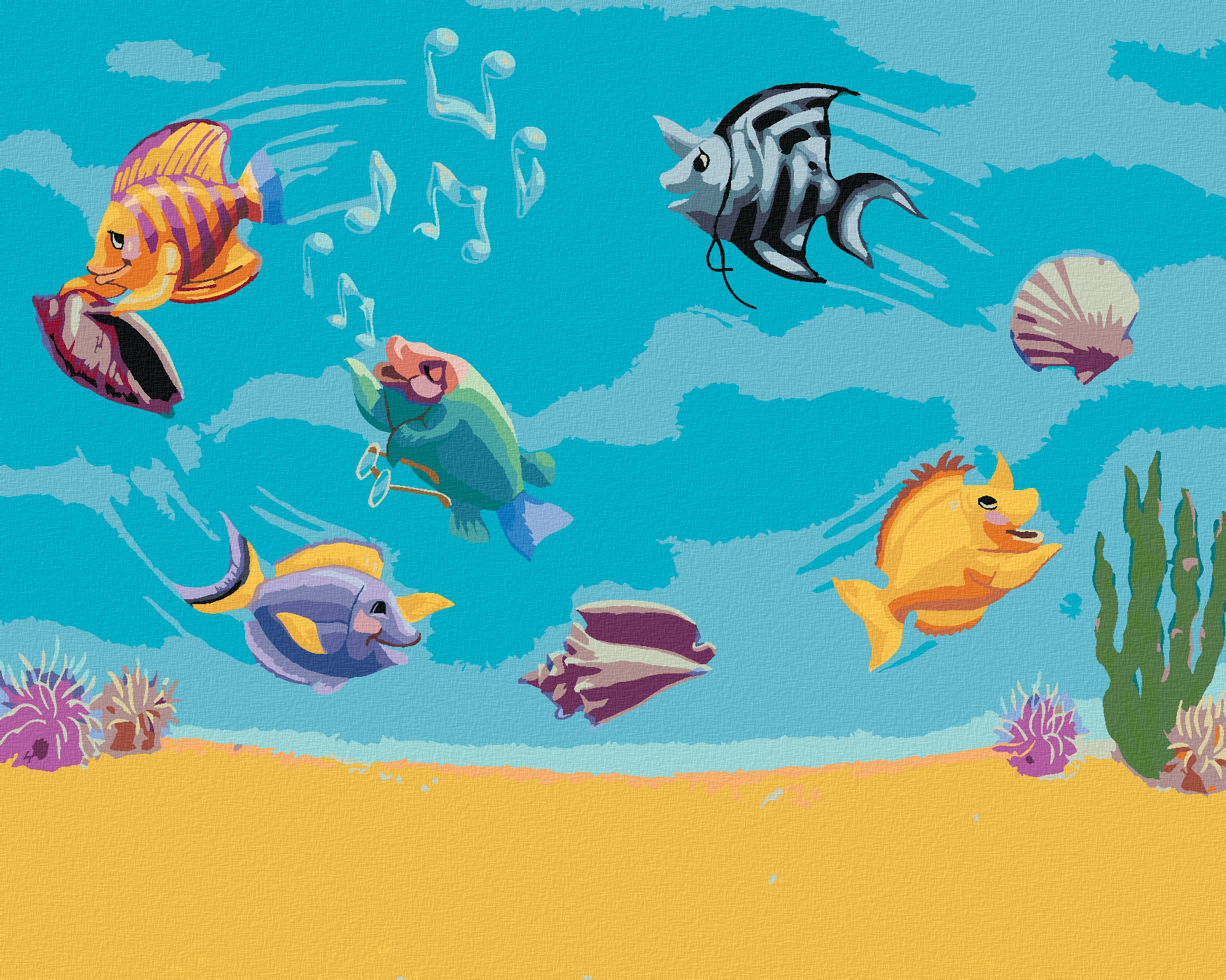 Pictură pe numere - PEȘTIȘORI DANSÂND ȘI CÂNTÂND (SUE ELLEN BROWN)