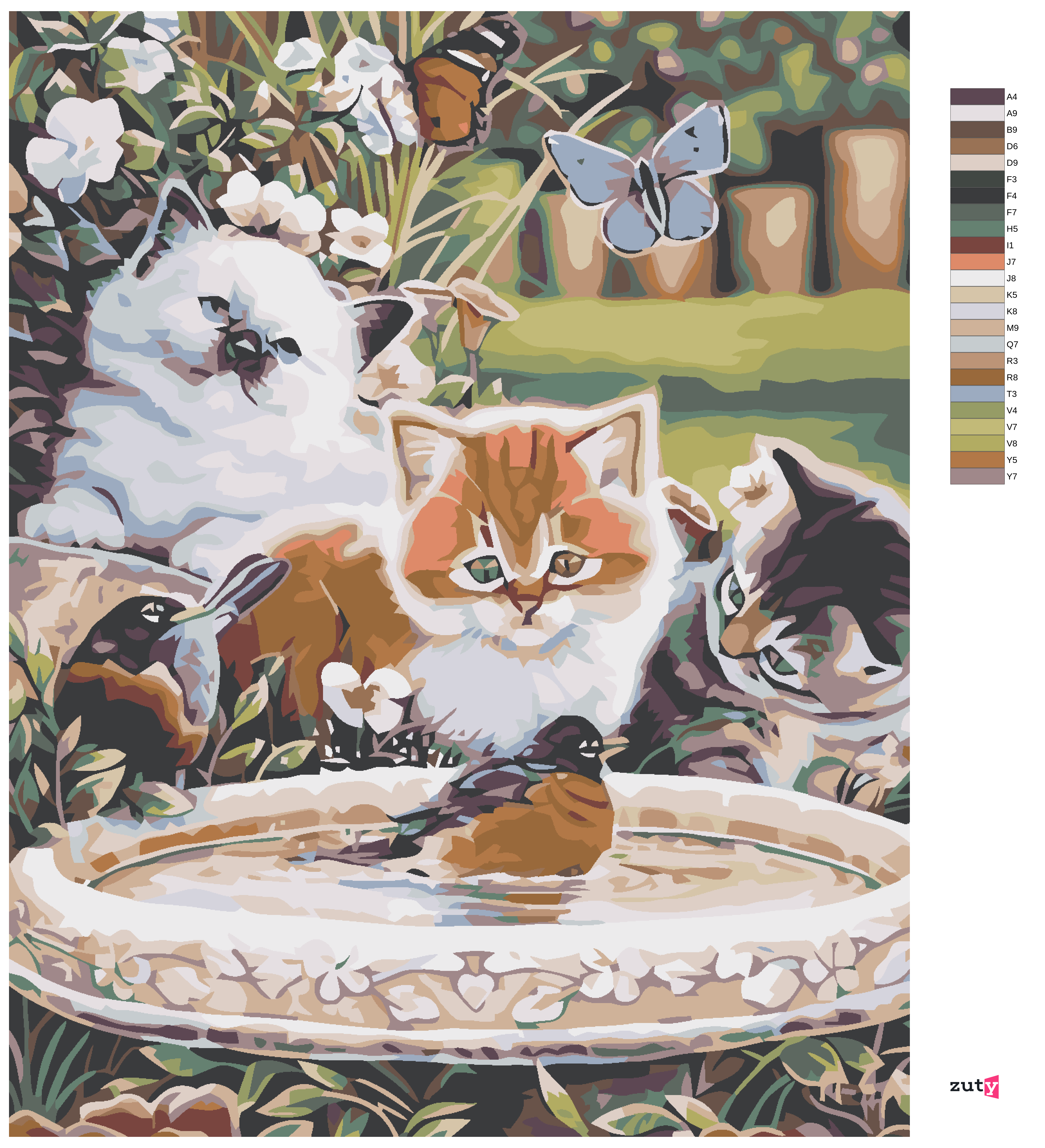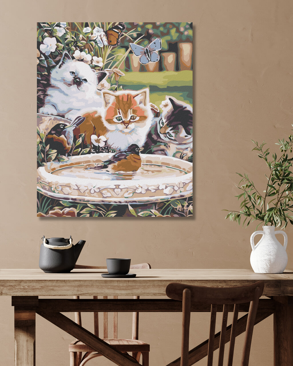 Pictură pe numere - PISOI PRIVIND O PASĂRE