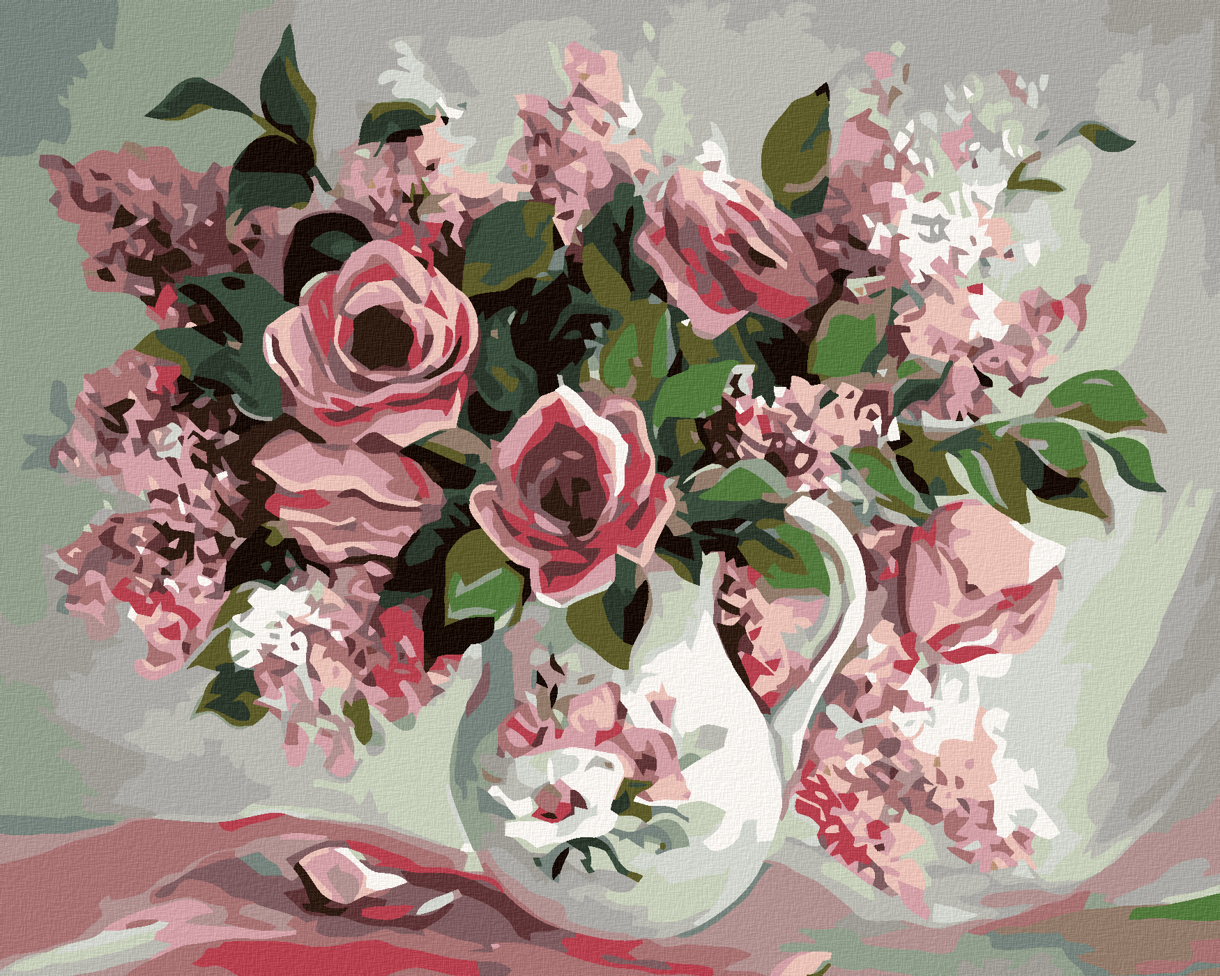 Pictură pe numere - TRANDAFIRI ȘI LILIAC ÎNTR-O VAZĂ PICTATĂ