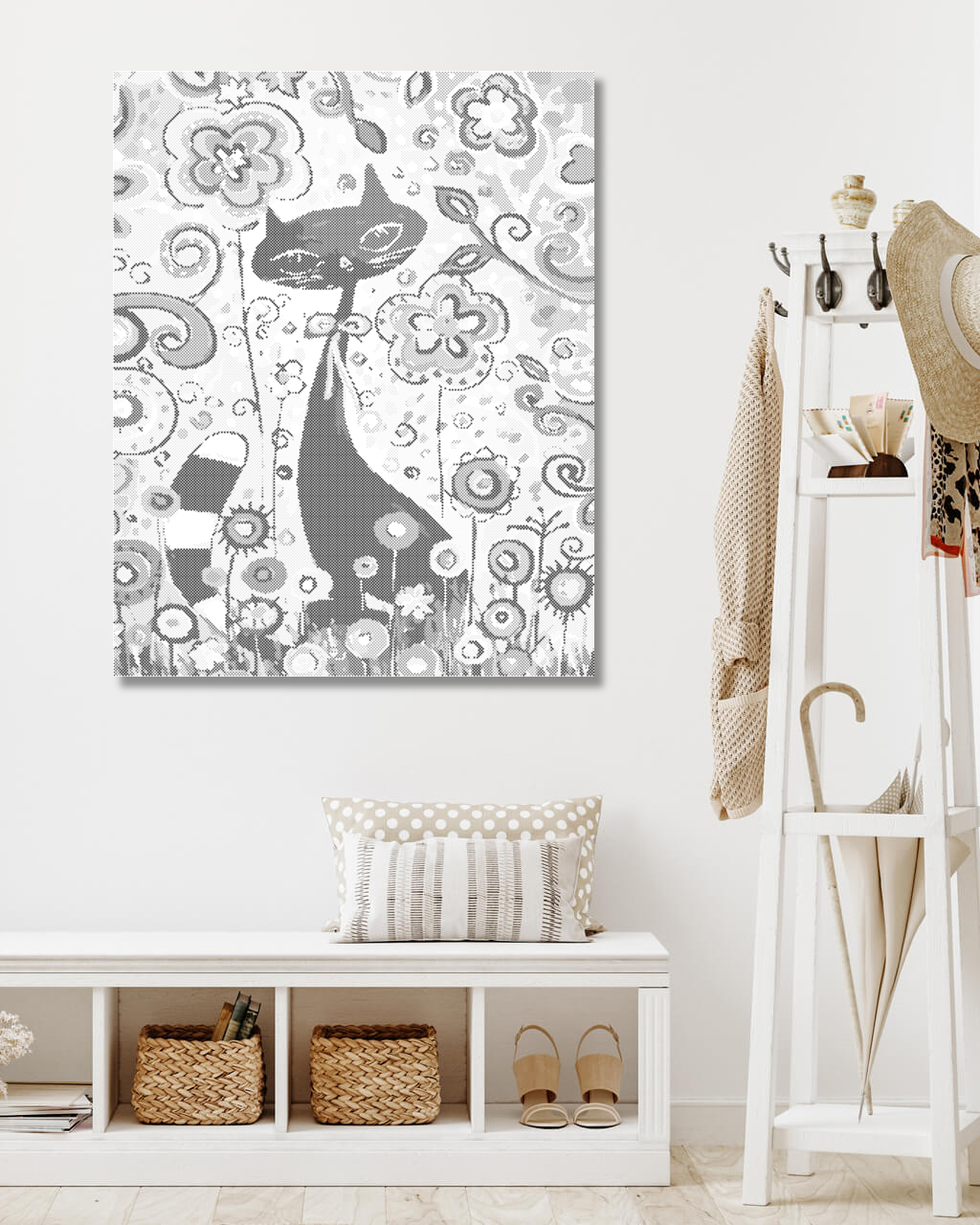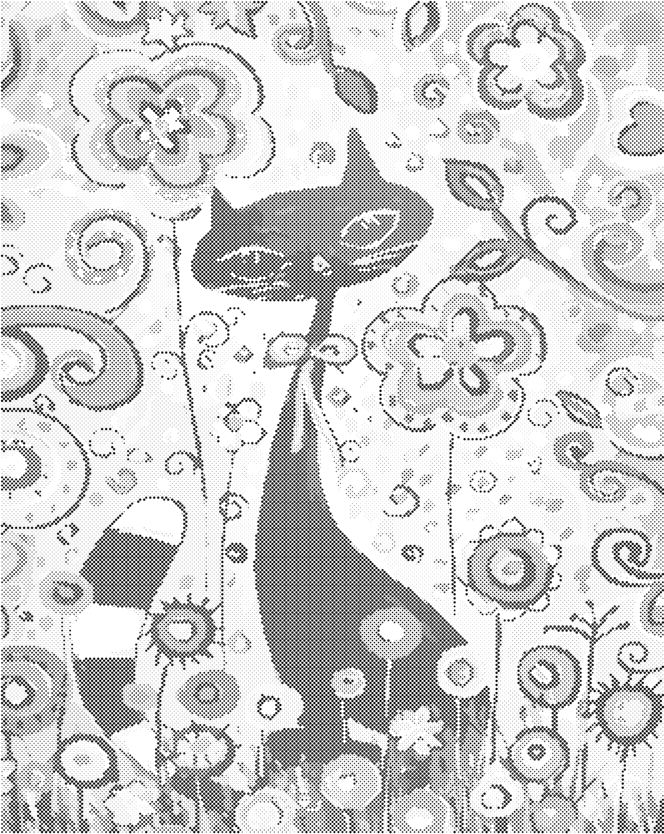Picturi cu puncte - PISICĂ PRINTRE FLORI