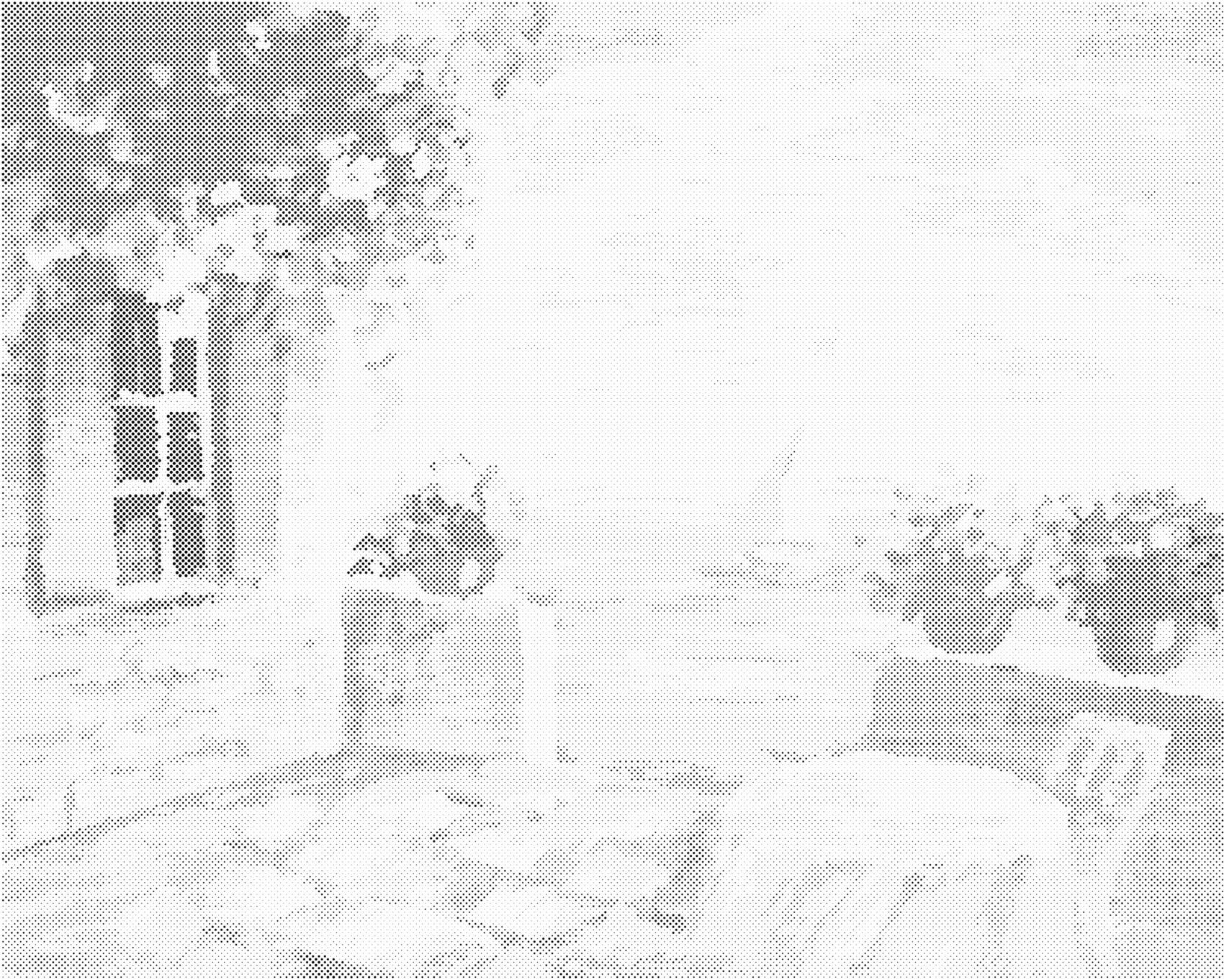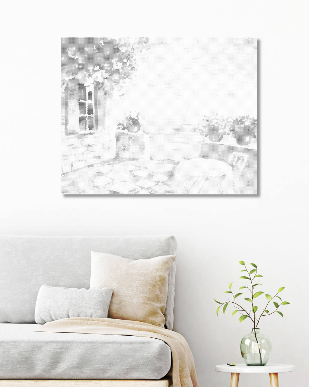 Picturi cu puncte - TERASĂ CU FLORI APROAPE DE MARE